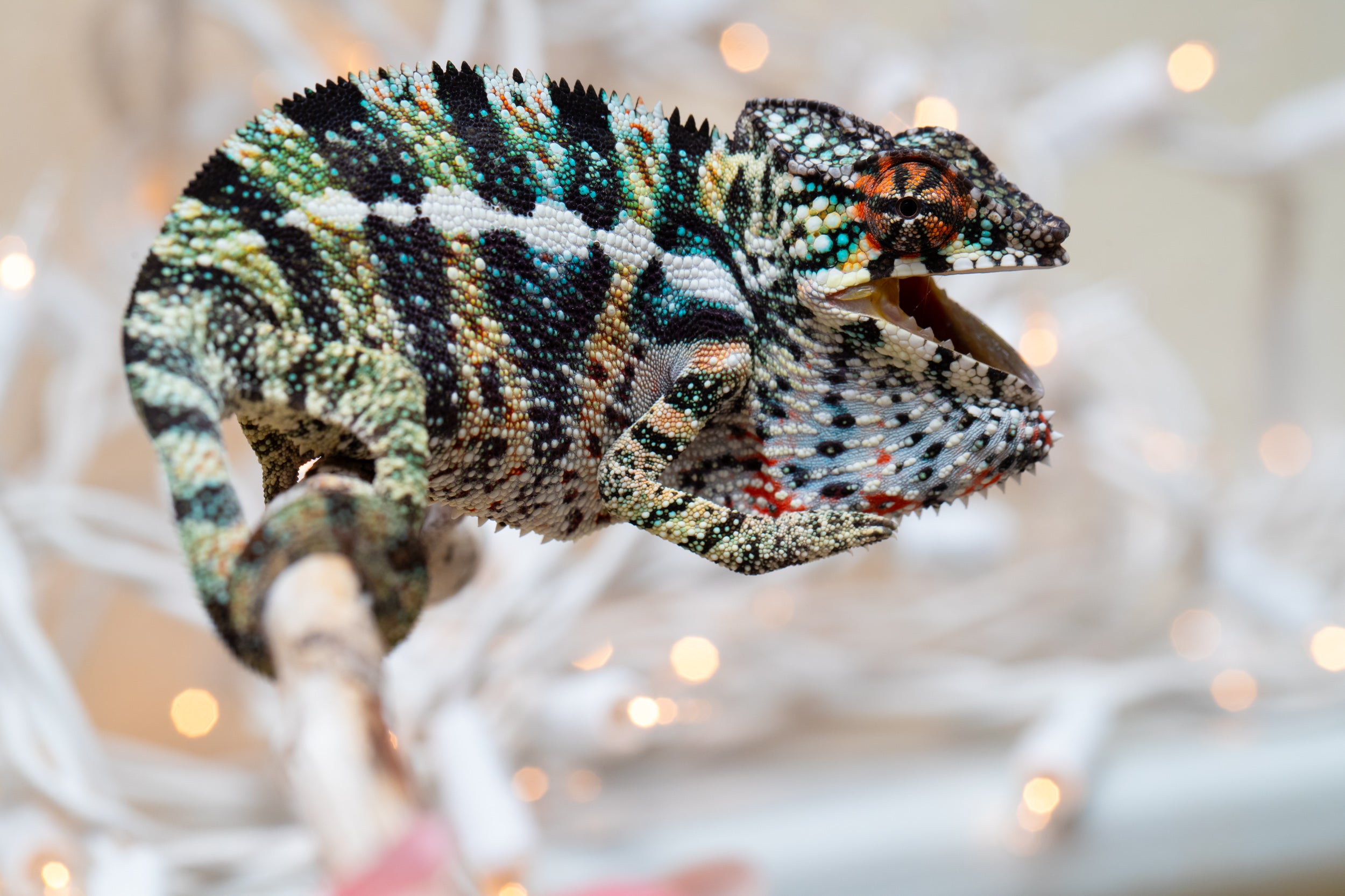 Care Guide: Excellent care and proper housing are key to a panther chameleon's happiness and well-being! Keeping husbandry familiar is essential for a smooth, successful acclimation, so please review our care guide to see exactly how our Kreations have been raised. Happy to help if questions arise!